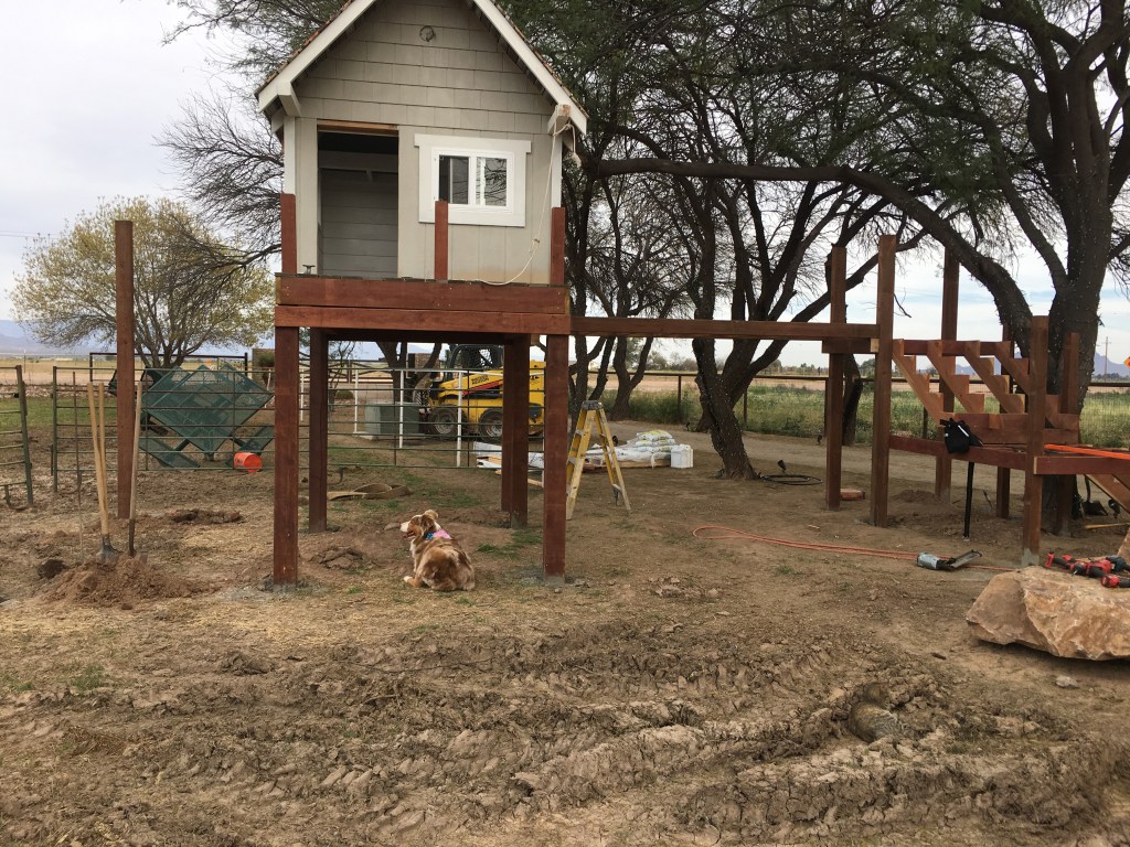 When Mike sets his mind to a project, he goes all out. For better or for worse. All. Out. What was supposed to be a playhouse, you know- just a small kid-friendly thing on the ground, quickly got mounted six feet in the air with slides, swings, electricity, a pond, and who knows where the ideas will end! It’s still a work in progress. This is why the grandkids know they can get away with anything when Grandpa’s around – he’s the maestro of fun and mess-making.